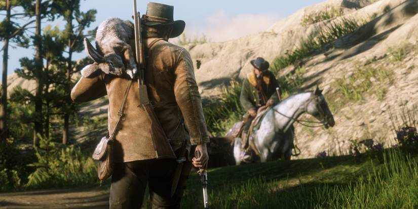 This also occurs when you sling an animal corpse over your shoulder. Once you drop the corpse, Arthur will have a bloody patch on his shoulder and back, requiring you to either wash it off or change your clothes. As we said, it's a messy business, indeed!