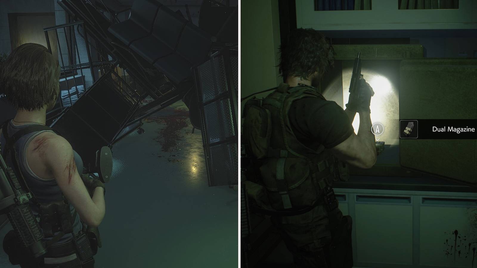 The Dual Magazine doubles the capacity for Carlos's Assault Rifle. Be sure to grab this while playing as Carlos, because Jill only has access to the same gun on the "Assisted" difficulty mode. In the Nurse's Station room of the Hospital, there sits a safe that can be opened using the combination of nine clockwise and three counterclockwise.