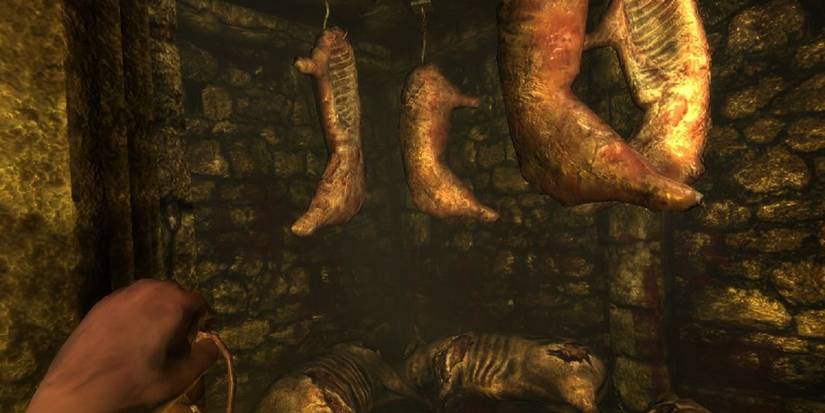 Yet ironically, horror games that lean on minimalism can often be more unsettling, especially when your hero is vulnerable and underpowered. This is the source of Amnesia's creepiness. As Daniel, you're given naught but a lantern to light the way, some Tinderboxes, and occasional items like human limbs to toss into a pond to divert a monster's attention.