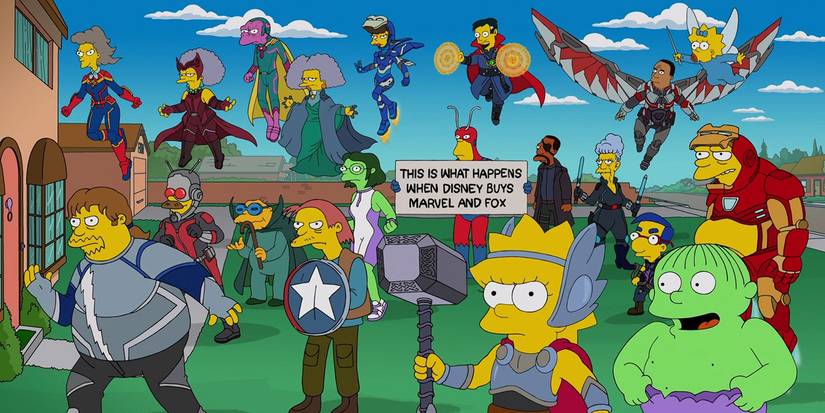 During the climax of The Simpsons: The Good, The Bart, and The Loki, a Marvel Studios-Simpsons crossover animated short streaming on Disney+, the writers wave the white flag. Lisa Simpson, having just been deemed worthy of Thor’s hammer Mjolnir, introduces “The Springfield Avengers,” a cavalcade of local friends, neighbors, and classmates fashioning tightly accurate attire of the Marvel menagerie. Near the center of the assembly - which features inspired fusions like Selma Bouvier as Agatha Harkness and Hans Moleman as the literal Mole Man - Rainier Wolfcastle (the franchise’s Arnold Schwartzneggar stand-in) holds a sign while dressed in the original 1960s Ant-Man suit: “This is what happens when Disney buys Marvel and Fox.”