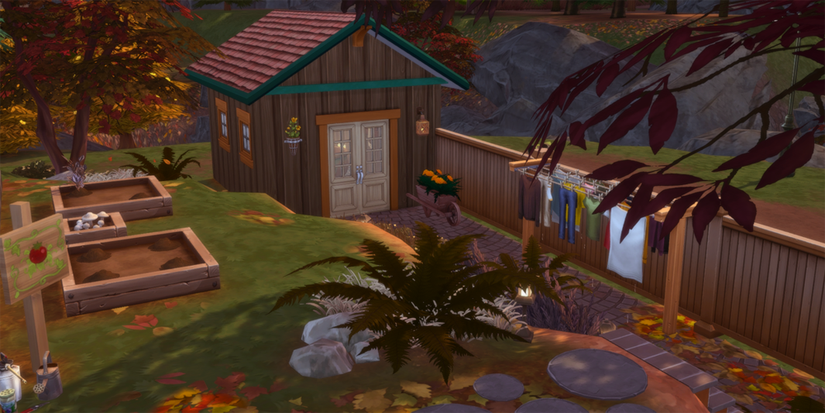 Along with the main house, this home has a large backyard that has planter boxes and a small shed where Sims can go to practice their spells and brew potions. If your Sim loves to make potions for everything, they can grow the herbs right there in their garden and then walk down to the shed to brew them up.