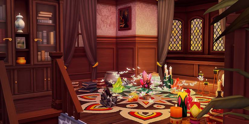 This house is decorated with a ton of Halloween-inspired items from the Spooky Stuff Pack, but that doesn't mean that you can't switch them out for more seasonally neutral items. Or, maybe you love this dark and eerie aesthetic for your Spellcaster. The beautiful thing about The Sims 4 is that you can do anything you want.