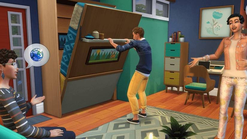 Tiny Living includes many objects in Build/Buy mode that players can use to make the best of their lack of space in tiny homes. Avoiding wasting space is the most important part of furnishing a tiny home, so many of the items use 1-2 tiles to place. The pack also includes new objects like murphy beds and TV/Shelf combos.