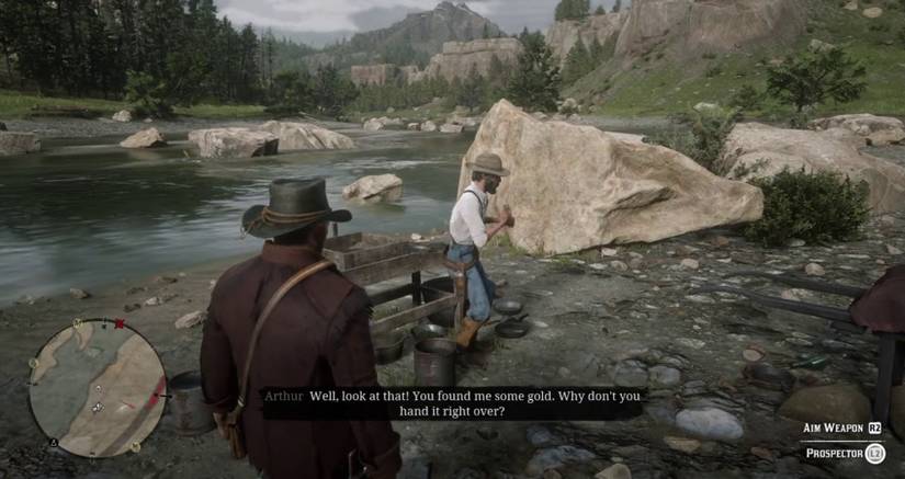 As it stands there are a number of gold prospectors players can randomly encounter near rivers. These prospectors will pan for a while before celebrating a discovery and riding off. If players kill them it’s revealed they’ll have a gold nugget in their possession that wasn’t there before.