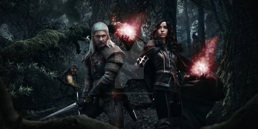 DarkDrawer513 went all the way with his partner in this one. Not only are the costumes perfect down to every detail, the after effects that add the made fire and the monsters into the woods make the photo look like a still from a Witcher movie.