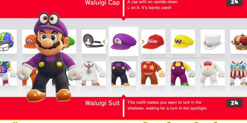 One of these outfits, in the style of Waluigi's signature look, takes things a little too far with its reference, with his cap saying "It's barely used!" And the body saying, "Makes you want to lurk in the shadows, waiting for a turn in the spotlight." Ouch.