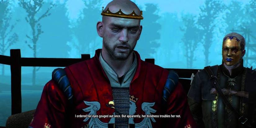 It's not a medieval-themed series without the presence of a mad king! Radovid slowly loses his sanity and stability as the games progress, with his mental state being very questionable by The Witcher 3. The King of Redania had many people killed and spent the entirety of the third game trying to conquer Novigrad through devious tactics. His rough upbringing led him to be ruthless, easy to upset, and eager to hurt others, making him very unlikable and unsettling. He even gouged Philippa Eilhart's eyes out, leading her to do the same once she gets the chance to kill him.