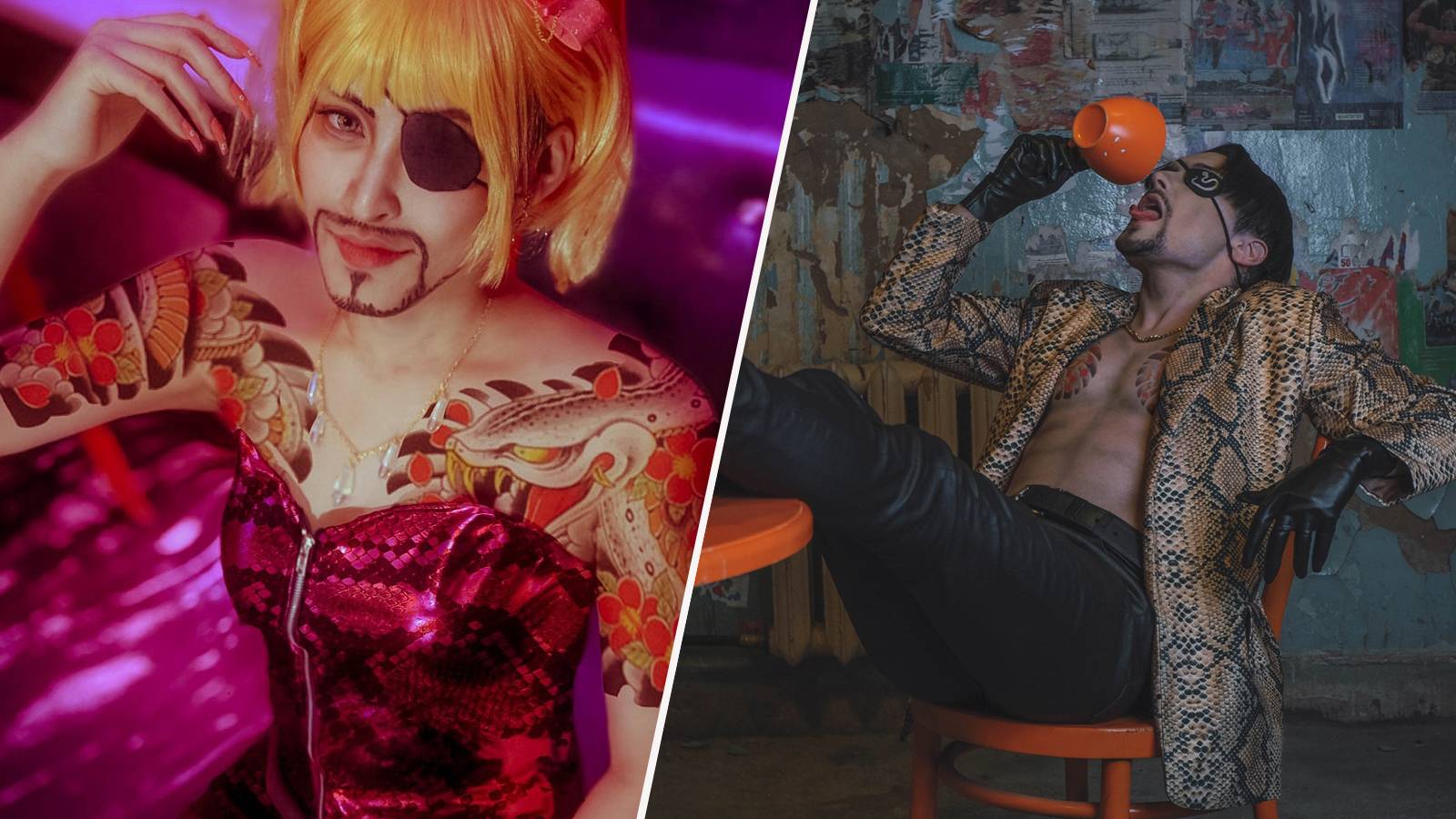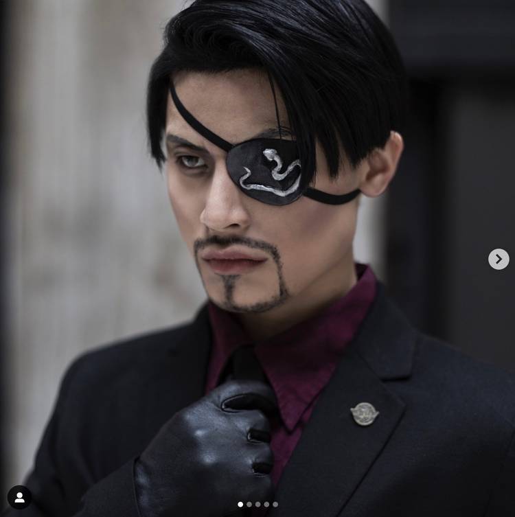 Additionally, though Majima starts the early games in a plain eye patch, in later titles he adorns it with a silver snake motif, also shown in this cosplay.