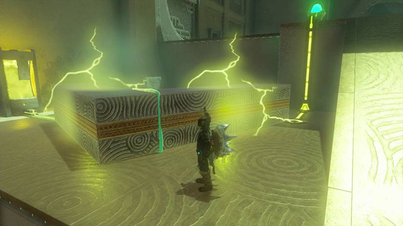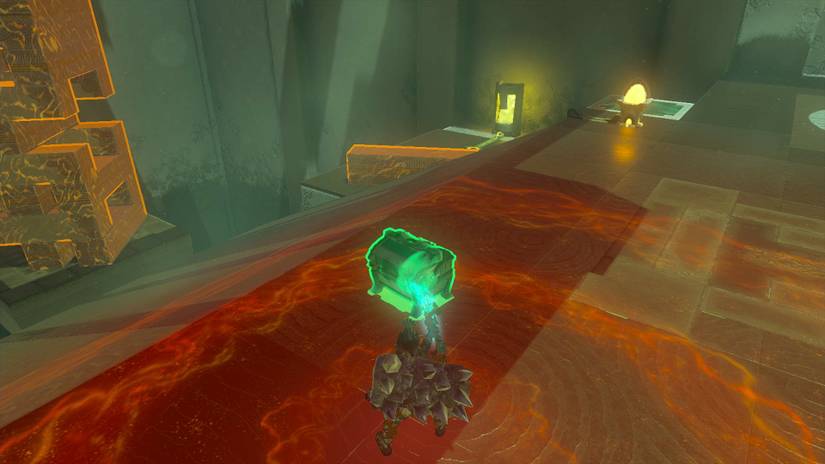Simply grab each of the blocks that were removed from the tower to provide power to open the door, and fuse them together to form stairs that can be used to reach the ledge and open the chest, which contains a Zonaite Bow. The shrine is then completed and Link can head into the previously locked room to claim his reward.