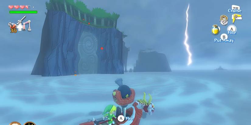 One of the biggest criticisms for Wind Waker is the constant sailing back and forth throughout the world. Especially towards the end of the game during the Triforce Quest. On the GameCube, you needed to search for seven triforce charts to find the pieces of the triforce. After this, you have the seven charts you need to sail back and forth again looking for the triforce shards.