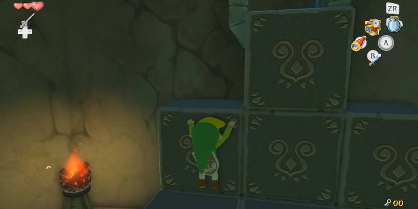 Many puzzles in Wind Waker involve Link rearranging and climbing on several boxes. Originally, most items could be climbed by having Link walk up to them, with some large boxes requiring the player to press A to climb. With the remake, the "press A to climb" feature was removed. Instead, Link could climb these boxes by walking aimlessly into them for a few seconds, such as he would in earlier games.