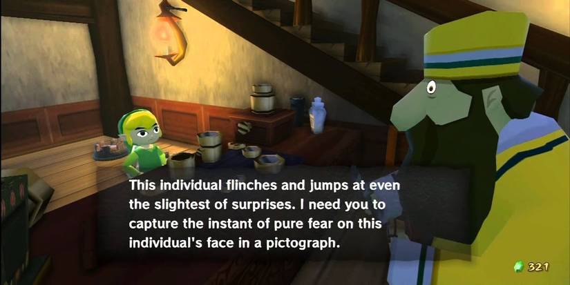 Obtaining the Picto Box is fairly easy in Wind Waker as it can be found early on in the game, in Tingle's Cell. But most quests involving the Picto Box require the Deluxe Picto Box, which allows you to take color photos.